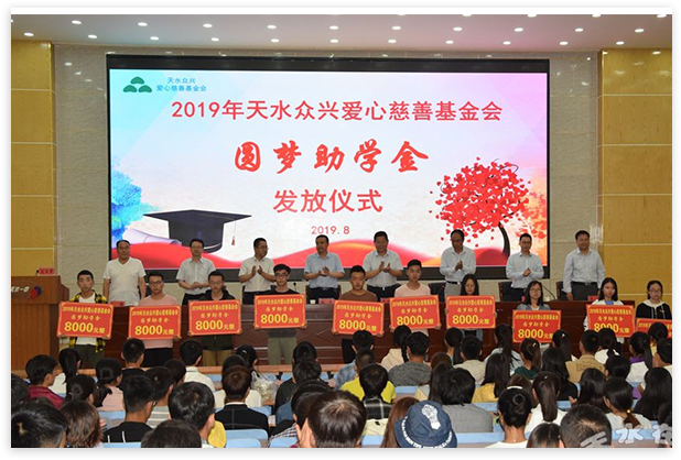 ●   以“天水眾興愛心慈善基金會(huì)”為載體,以“弘揚(yáng)正氣、奉獻(xiàn)愛心,扶貧濟(jì)困、救孤助學(xué)”為宗旨,用愛心守護(hù)未來。