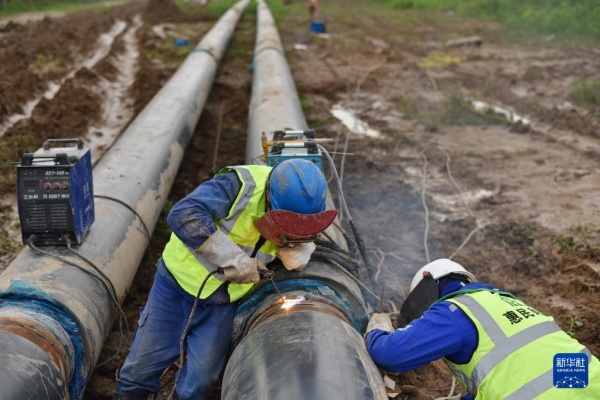 10月19日,山東省濱州市惠民縣樂安熱力公司工作人員在搶建高溫水供熱管道。