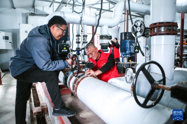10月19日,在河南省焦作市博愛縣九街社區(qū),專業(yè)技術(shù)人員對集中供暖站的設備、管道開展全面檢修維護。