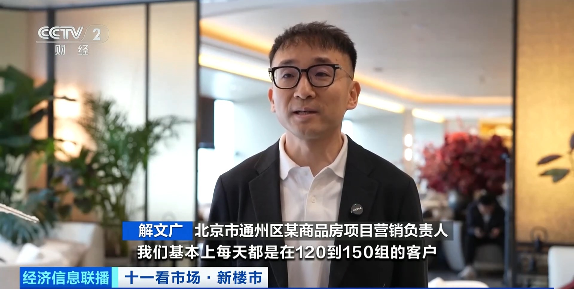 北京市通州區(qū)某商品房項目營銷負責人 張文言:我們持續(xù)有實景展示區(qū)的呈現(xiàn),相當于是在全維度上面都可以給客戶做到實景的呈現(xiàn)效果。“十一”假期,目前每天到訪50到60組客戶,隨著客戶從外地陸續(xù)返京,整體的到訪量跟成交量可能還會有進一步的上升。