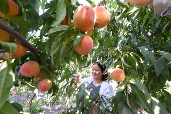圖為河北省邯鄲市復(fù)興區(qū)戶村村民在采摘鮮桃。新華社記者 趙鴻宇 攝