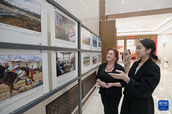 9月29日,觀眾在白俄羅斯明斯克參觀西藏自治區(qū)成立60周年發(fā)展成就圖片展。