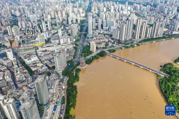 10月3日,郁江廣西南寧城區(qū)河段(邕江)水位持續(xù)上漲(無人機(jī)照片)。