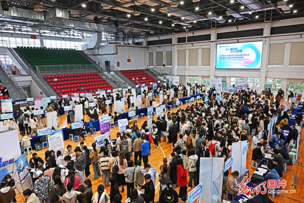 江蘇省2026屆高校畢業(yè)生秋季招聘月暨南京醫(yī)科大學康達學院專場招聘會舉行,來自醫(yī)藥行業(yè)的60余家單位為2026屆畢業(yè)生提供1700余個崗位。招聘現(xiàn)場人頭攢動,畢業(yè)生們紛紛前往自己心儀的工作單位咨詢洽談。(朱德富攝/光明圖片)