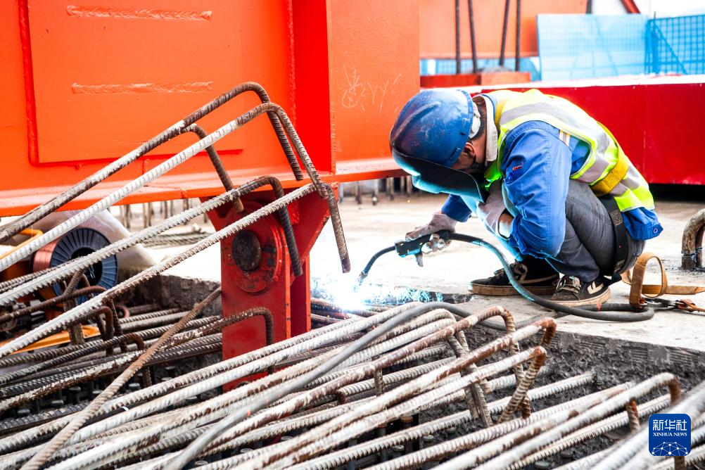 10月17日,工人在渝萬高鐵石沱長江大橋建設現場施工作業(yè)。
