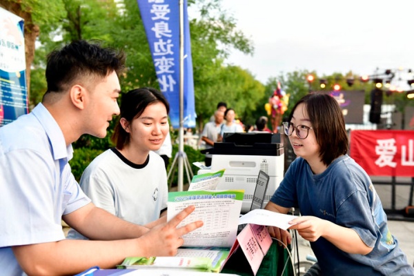 2025年8月25日,在山東省濱州市惠民縣孫武廣場(chǎng),人社局的工作人員向市民介紹社保證明查詢相關(guān)服務(wù)。新華社記者 郭緒雷 攝