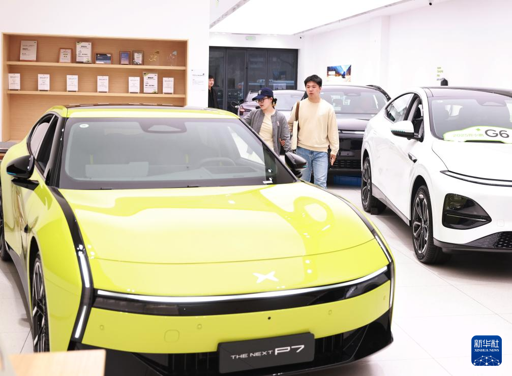 10月14日,在湖北省武漢市武昌區(qū)一家商場(chǎng),顧客在選購(gòu)新能源汽車。