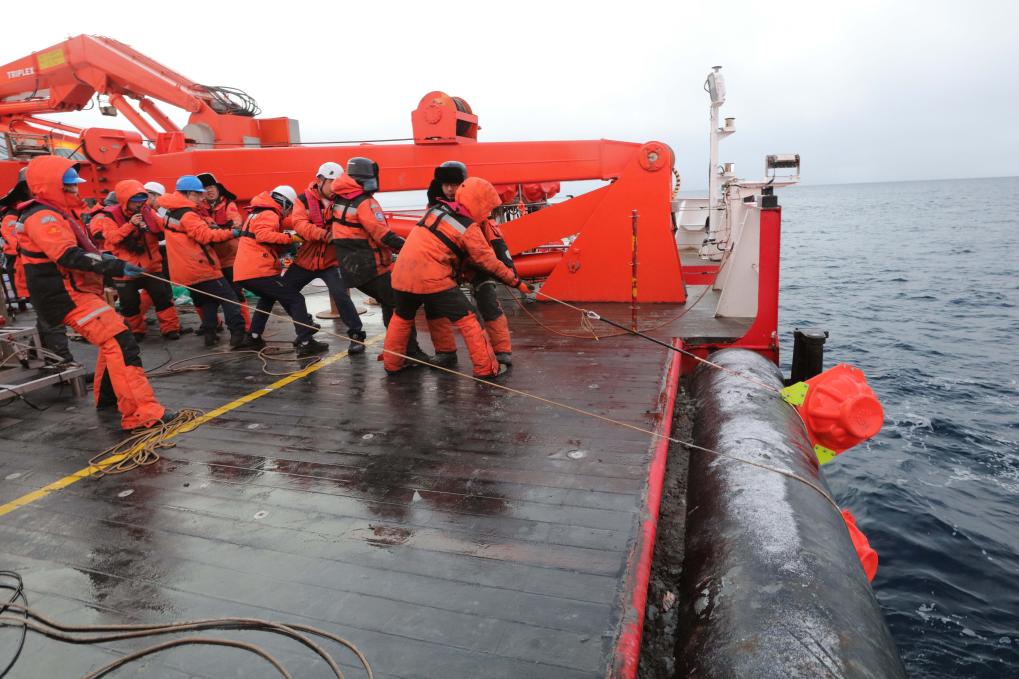 “難得的好天氣,沒霧沒浪也沒海冰,水深不到200米,與有難度的冰區(qū)回收相比,今天應(yīng)該會比較順利。”負(fù)責(zé)回收的隊員任健說。