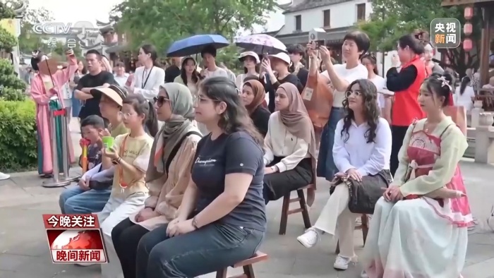 除了購物游,古鎮(zhèn)游也正在被不少外籍旅客納入行程。他們穿梭在古鎮(zhèn)中,或是裝扮成婺劇中的花旦,體驗戲曲的魅力,或是跟著老師敲打、上墨,感受中國的非遺之美。