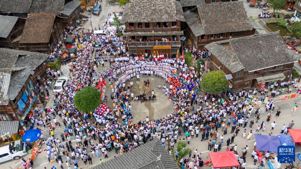 這是2024年7月20日在貴州省黎平縣雙江鎮(zhèn)黃崗村拍攝的 “喊天節(jié)”活動(dòng)現(xiàn)場(chǎng)(無(wú)人機(jī)照片)。