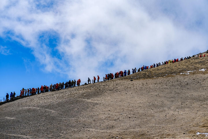 2024年5月24日,游客登上長白山主峰觀賞天池。新華社記者 顏麟蘊(yùn) 攝