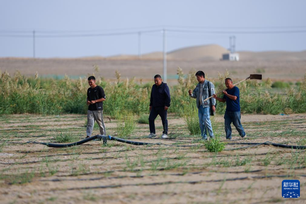 9月20日,在新疆巴音郭楞蒙古自治州尉犁縣一處羅布麻種植基地,工作人員在查看羅布麻長(zhǎng)勢(shì)。當(dāng)?shù)赝ㄟ^發(fā)展羅布麻產(chǎn)業(yè),實(shí)現(xiàn)生物固沙并帶動(dòng)經(jīng)濟(jì)發(fā)展。