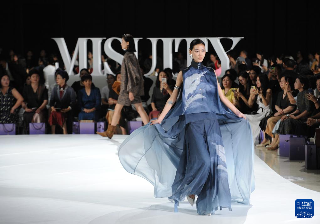 9月5日,模特在北京舉行的2025中國國際時裝周(秋季)開幕大秀上展示國奢品牌米休緹SS26系列時裝。