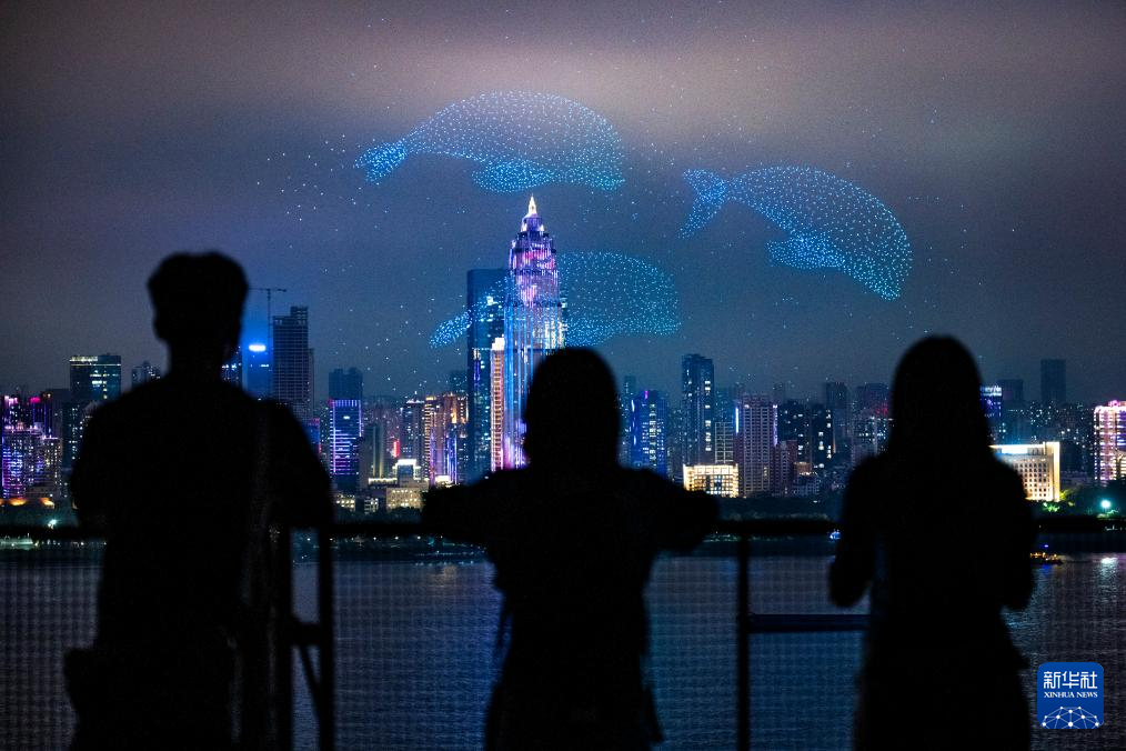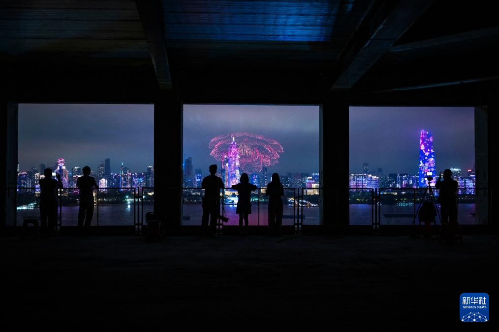 9月12日,市民觀看無(wú)人機(jī)表演。