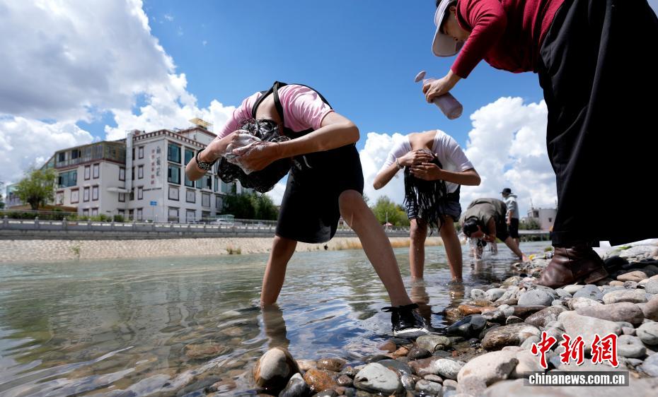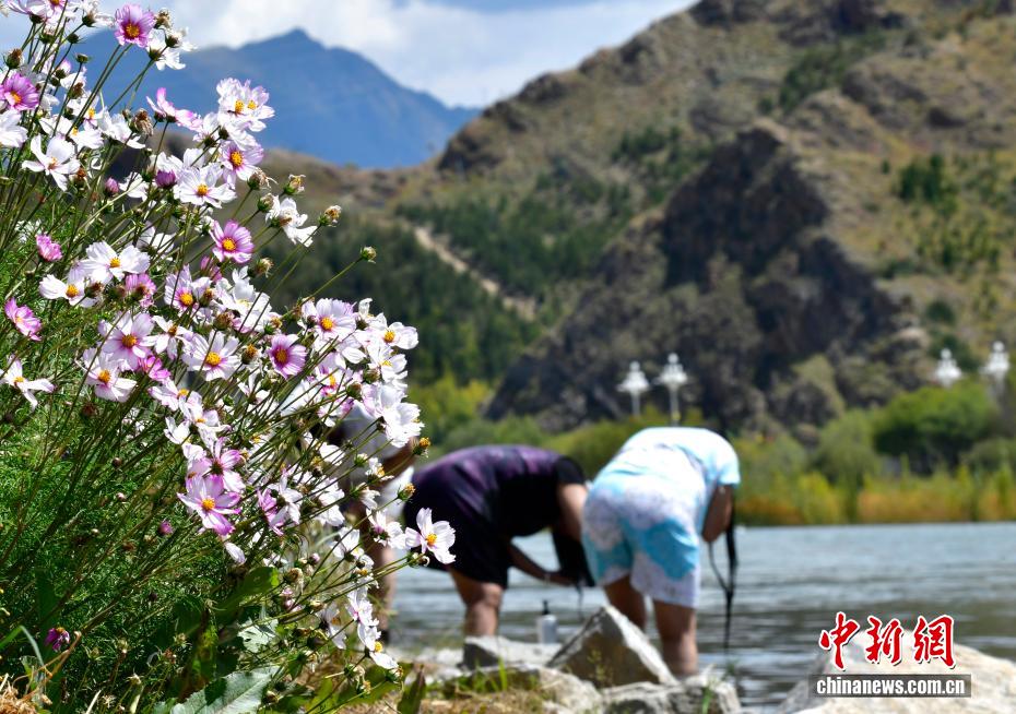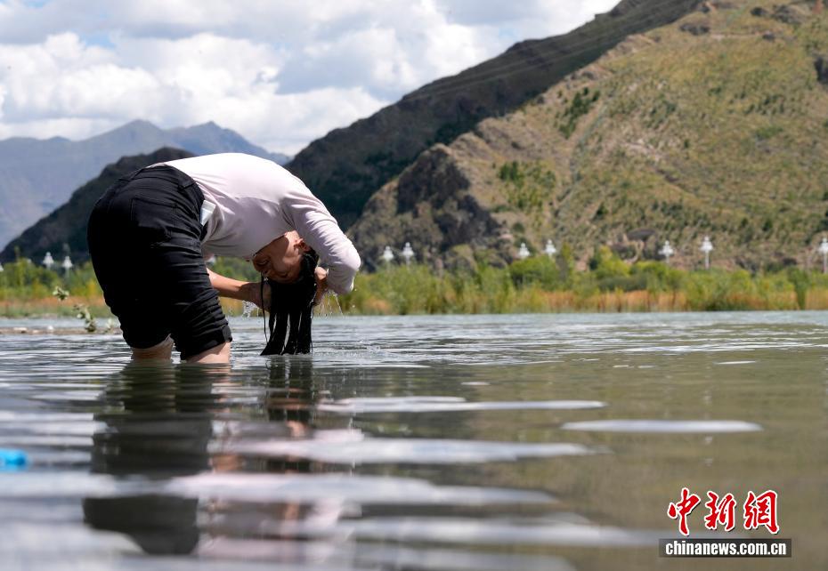 9月13日,西藏拉薩民眾迎來(lái)沐浴節(jié)。每年藏歷7月,西藏民眾迎來(lái)為期7日的傳統(tǒng)民俗節(jié)日沐浴節(jié),藏語(yǔ)稱為“嘎瑪日吉”?!恫蒯t(yī)養(yǎng)生》中記載,藥王星當(dāng)空,江河湖海等一切水源皆具藥性,七日內(nèi)沐浴可清凈業(yè)障。圖為民眾在拉薩河邊洗頭。