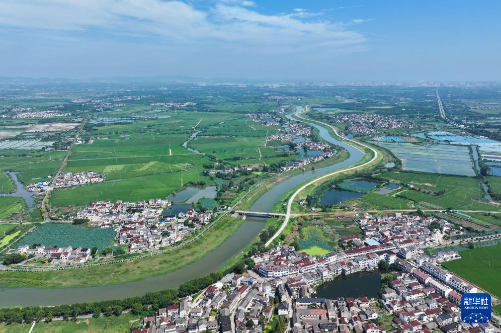 9月15日拍攝的句容赤山湖及周邊農(nóng)田(無人機(jī)全景照片)。