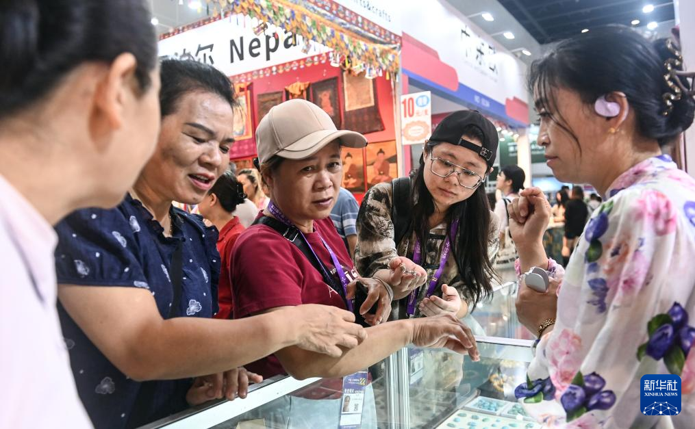 9月20日,觀眾在“一帶一路展區(qū)”選購飾品。
