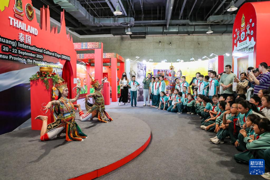 9月22日,學(xué)生在敦煌文博會上觀看演出。