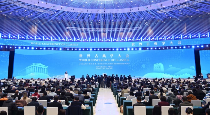 2024年11月7日,首屆世界古典學(xué)大會(huì)開幕式在北京雁棲湖國(guó)際會(huì)展中心舉行。新華社記者 李賀 攝