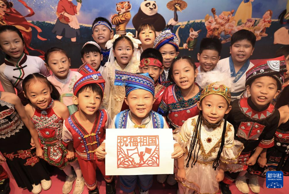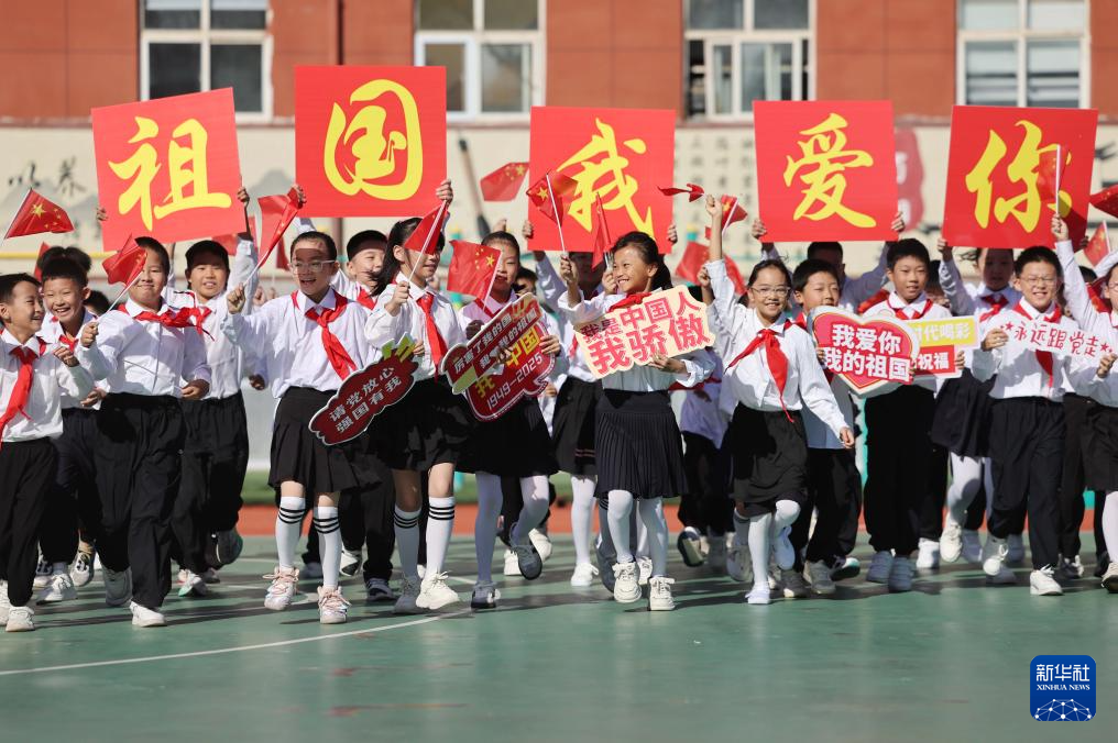 9月25日,在湖北省武漢市,未來實驗小學(xué)學(xué)生開展迎國慶主題活動。