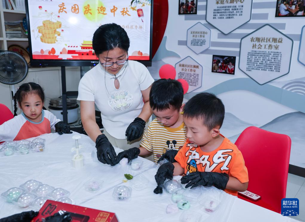 9月25日,浙江省嘉興市南湖區(qū)南湖街道煙雨社區(qū)開展親子月餅制作活動,孩子們在體驗傳統(tǒng)技藝的過程中感受文化魅力。