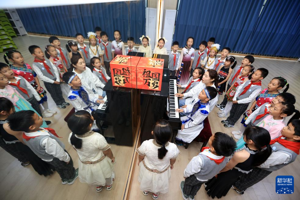 9月25日,在湖北省武漢市,未來實驗小學(xué)師生演奏《我愛你中國》,迎接國慶節(jié)。