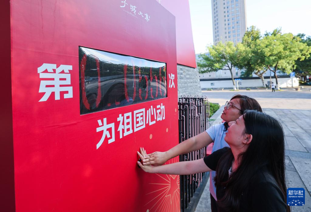 9月25日,在浙江省嘉興市南湖區(qū)建設(shè)街道的子城城墻邊,市民參加我為祖國心動打卡活動。