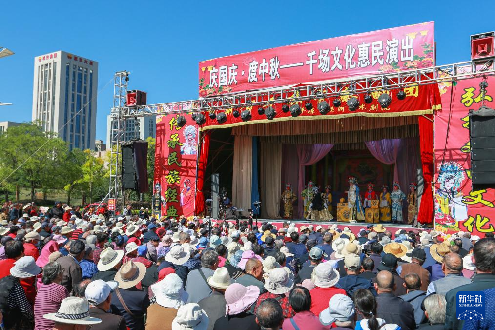 9月24日,在甘肅省平?jīng)鍪芯G地廣場,演員在“慶國慶·度中秋”戲曲文化惠民演出現(xiàn)場表演。