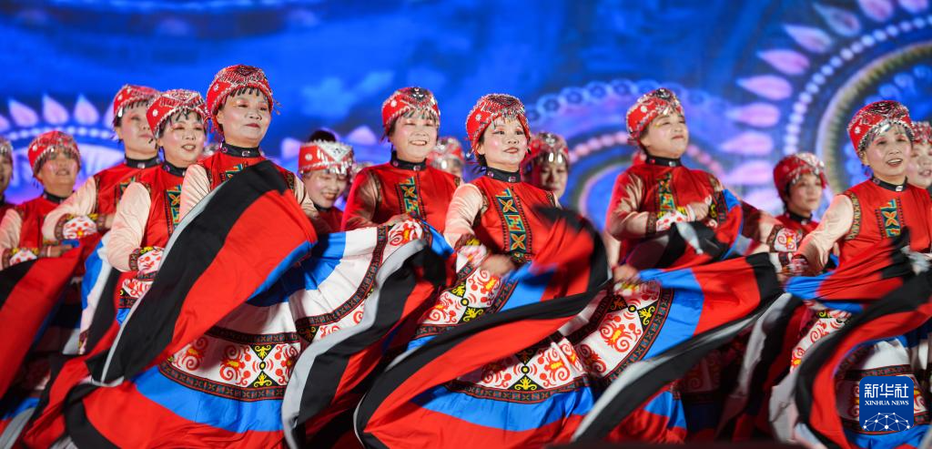 9月28日,農(nóng)民廣場(chǎng)舞表演隊(duì)在山東省鄒平市迎國(guó)慶群眾廣場(chǎng)舞大賽上表演。