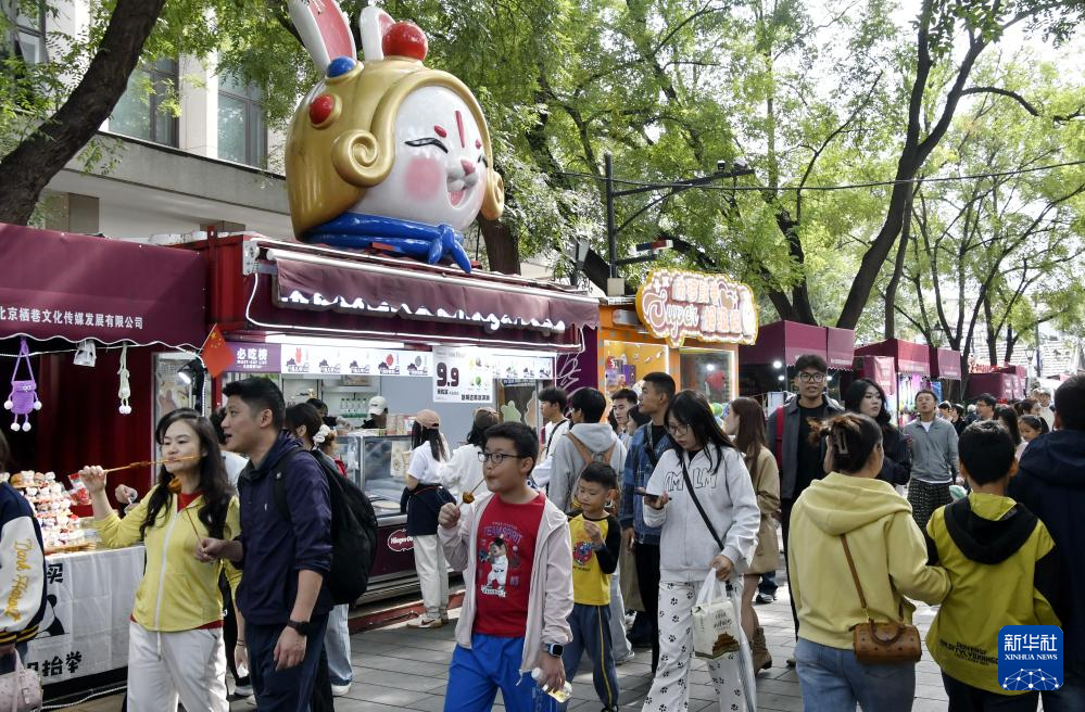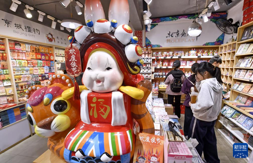 10月6日,游客在北京煙袋斜街的商店里選購北京兔兒爺文創(chuàng)產(chǎn)品。