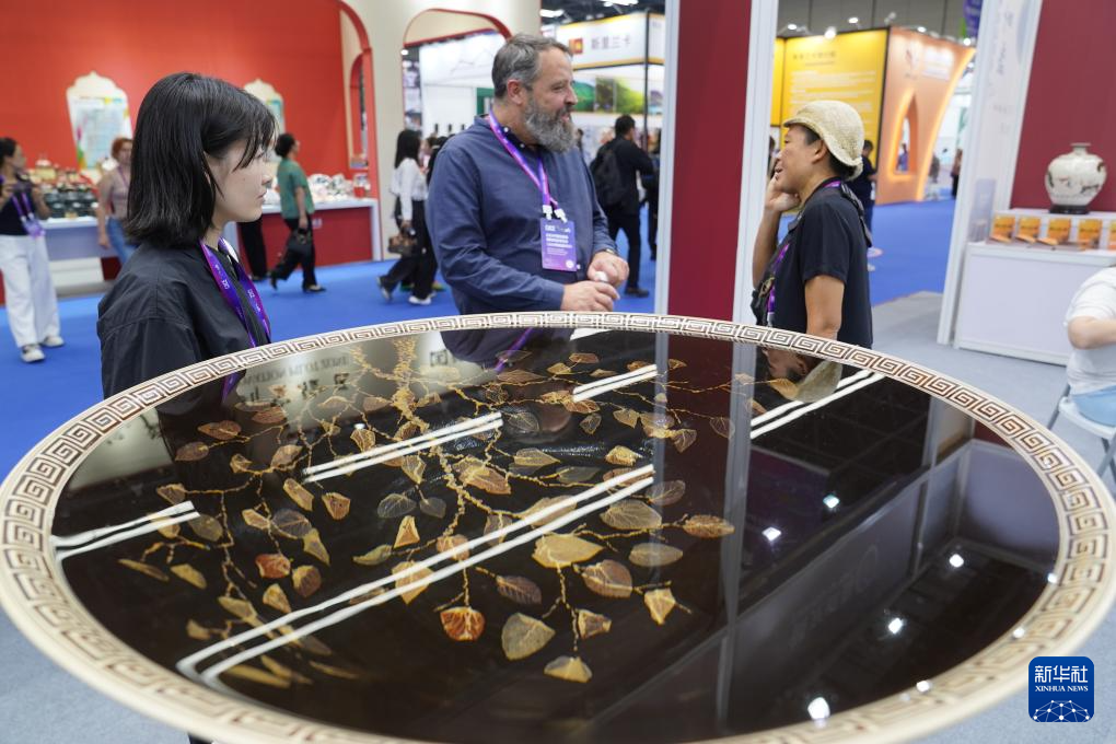 這是陶瓷博覽會展區(qū)展出的餐具(10月18日攝)。