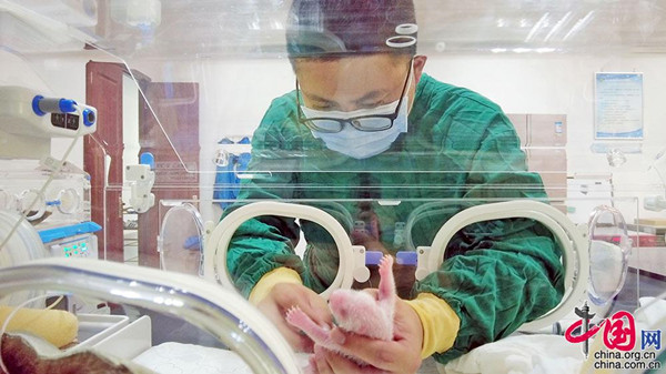 在曾文13年的工作生涯里,他印象最深的是工作的第3年,飼養(yǎng)極低體重50多克大熊貓的故事。“大熊貓幼仔出生時平均體重100多克,而極低體重的幼仔,飼喂難度大,要保證它們的存活,對飼養(yǎng)員來說是極大的挑戰(zhàn),這要求我們的工作要更加精細。大家集體討論一致通過喂養(yǎng)方案、24小時不停堅守,十多天吃住在大熊貓人工育幼室。最終,這只大熊貓成功存活。