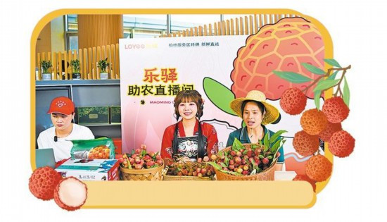 在廣東包茂高速柏橋服務區(qū),主播進行荔枝直播推介。新華社記者 鄧 華攝